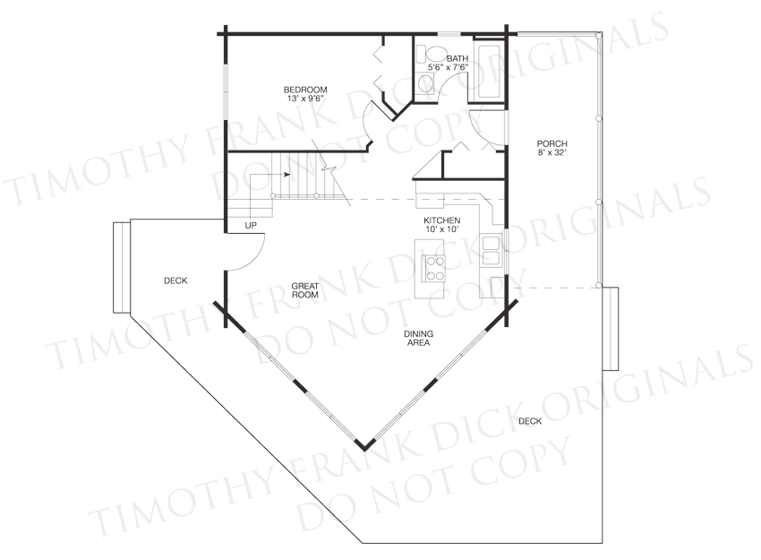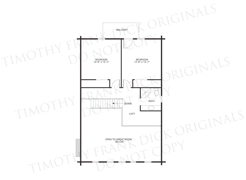 Conventional studwall and rafter framing can be in place of the log framing illustrated on the floor plans.